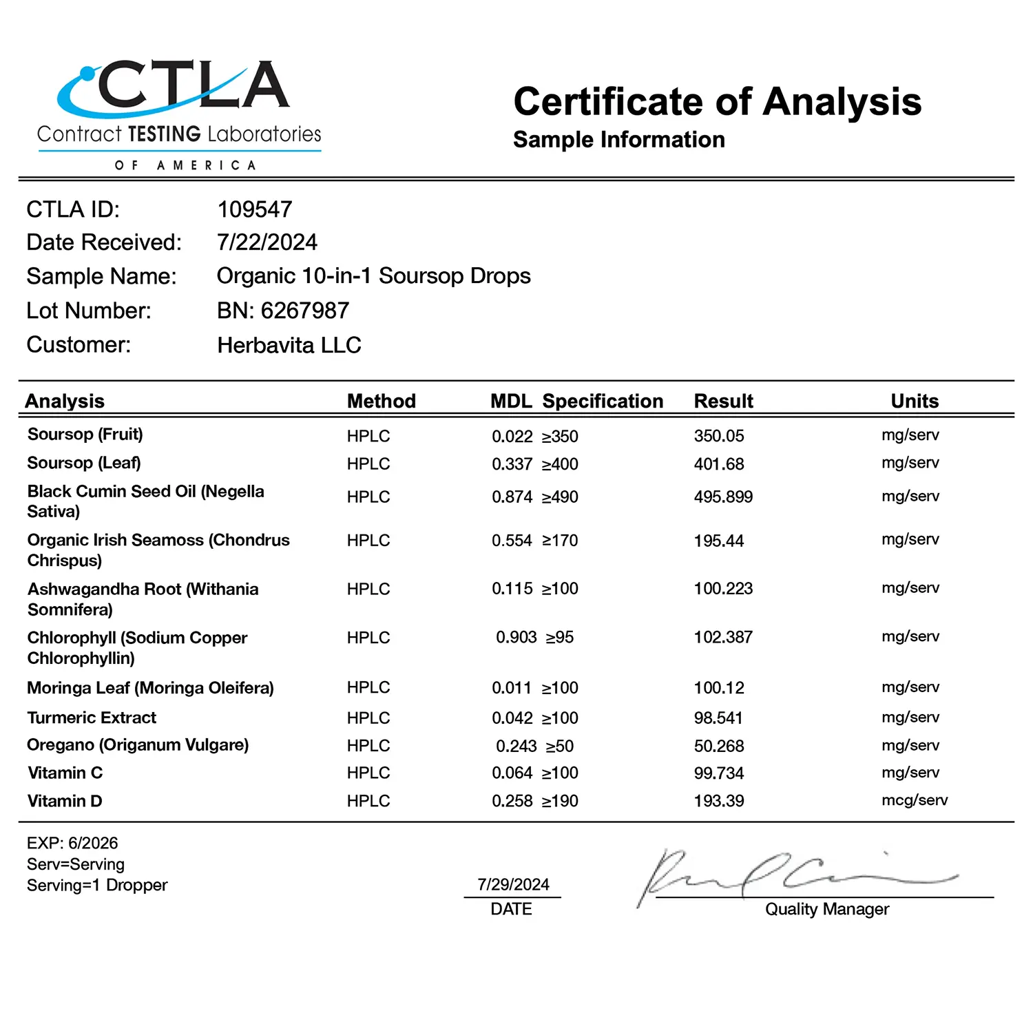 100% Organic 10-in-1 Soursop Extract Drops