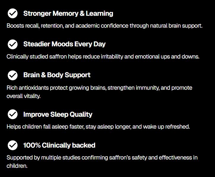 Yes, our gummies are safe for daily use. Each batch is made with clinically studied saffron, is plant-based, non-GMO, and third-party tested for purity and safety, so you can feel confident giving them to your child every day.
